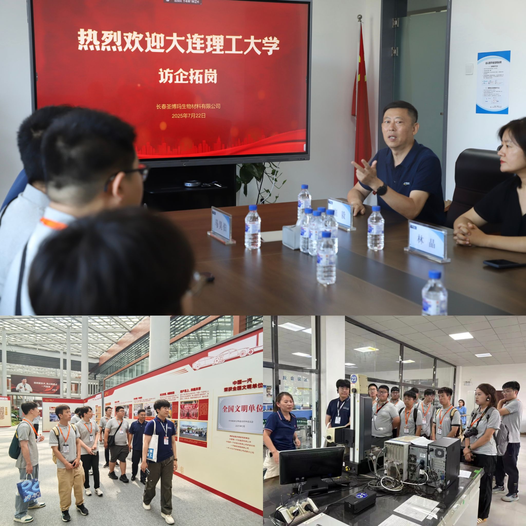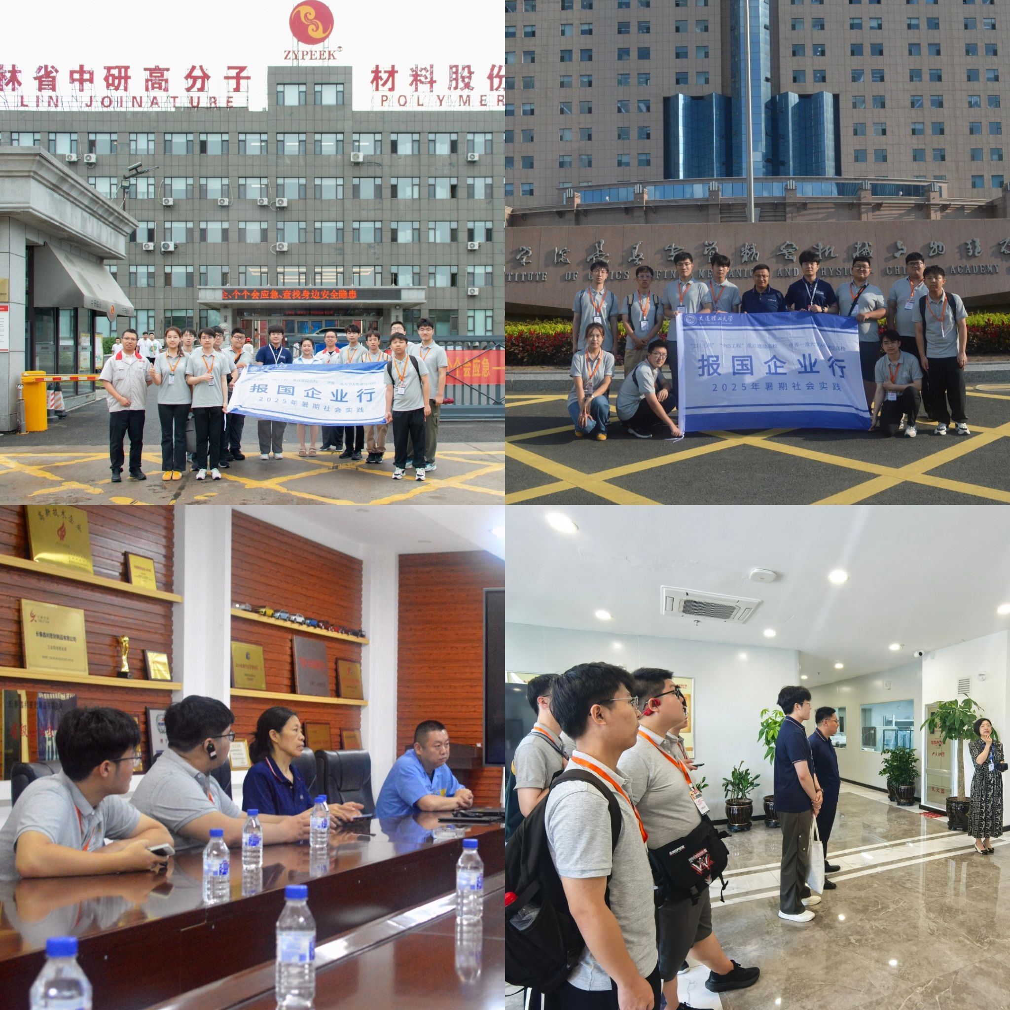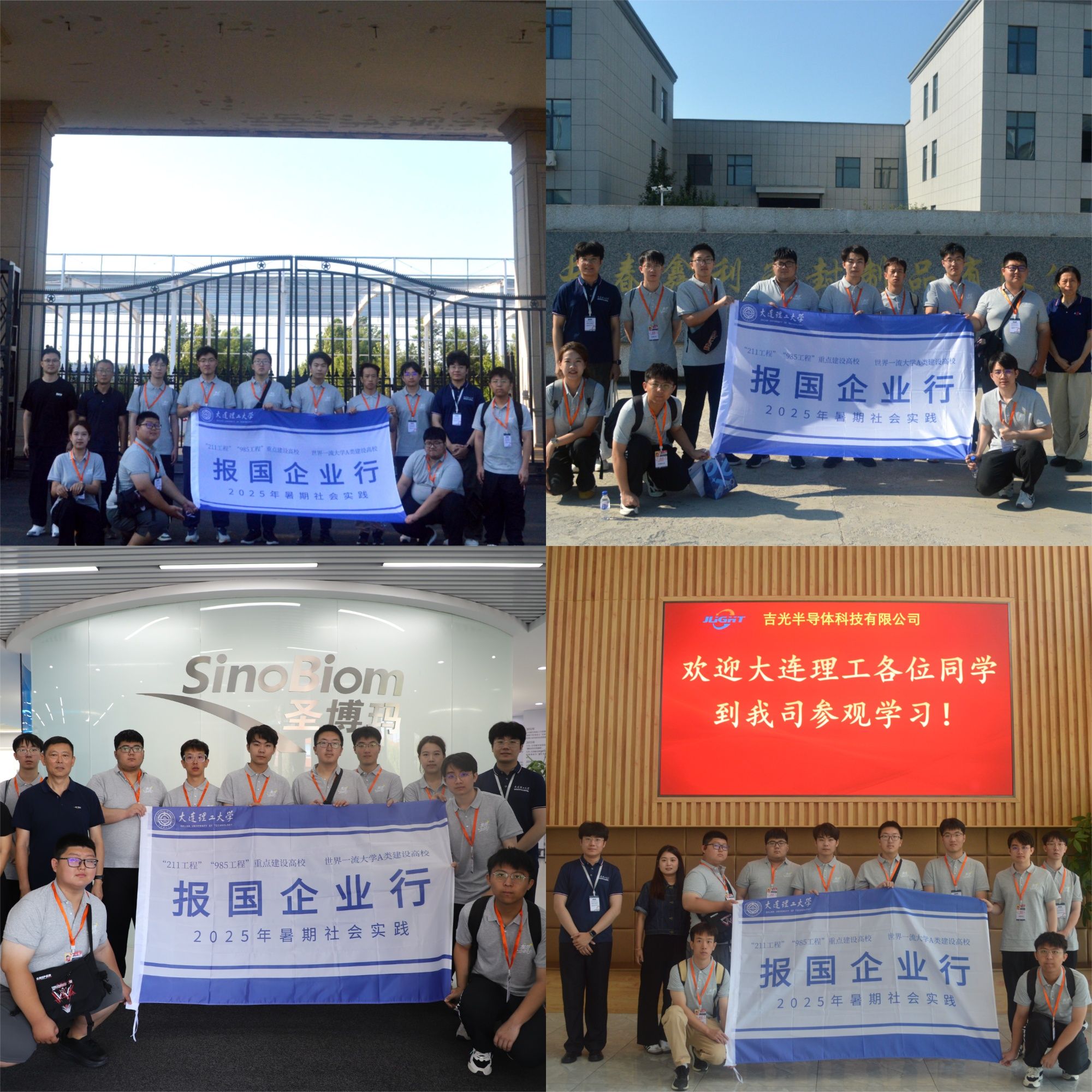 本次实践走访了长春市八家具有代表性的企业与科研院所,涵盖半导体、生物材料、密封技术、机械制造、汽车工业及高分子材料等领域。实践队先后前往吉光半导体科技有限公司、长春圣博玛生物材料有限公司、鑫利密封制品有限公司、吉林省吉通机械制造有限责任公司、中国科学经理春光学精密机械与物理研究所、一汽-大众汽车有限公司、中国第一汽车股份有限公司及吉林省中研高分子材料股份有限公司。