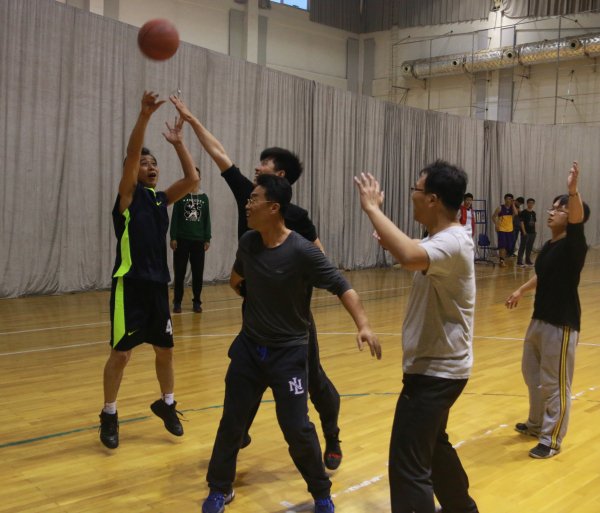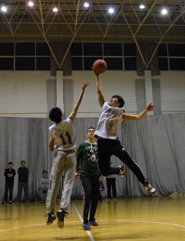 比赛一开始,员工代表队在窦智老师的带领下,凭借身体优势,突破教工队的防守,以12-4强势开局。教工队虽及时调整场上球员,积极防守的同时不断尝试有效的进攻策略,但依旧以21-10落后。随时间的推移,员工代表队体力消耗过度,而教工队良好的上场球员安排使其逐渐具备优势,中场结束前教工队将比分追至只差五分。