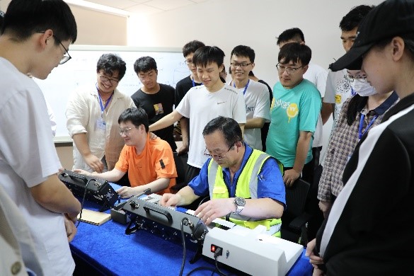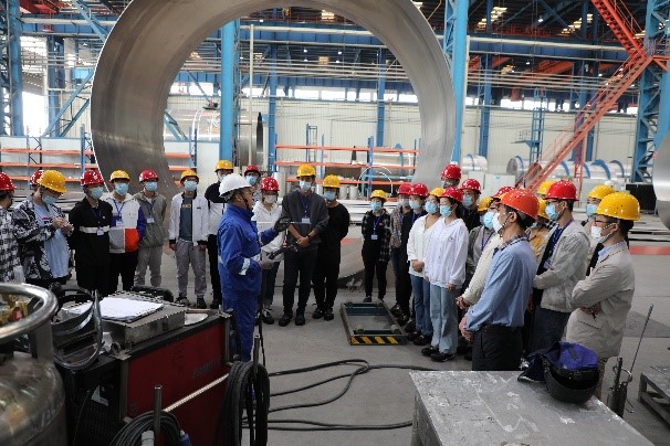在宝原公司实习的一周内,同学们在培训室巩固专业理论知识,在车间参观为重大工程项目提供的国产大型装备CAP1000新燃料运输容器、AP1000人员闸门、M310垂直立区堆乏燃料格架、巴基斯坦C3C4压力容器支撑等,了解宝原公司的整个生产链,也体验了PT、UT、RT等无损检测技术在实际情况中的应用。在专业技术人员的带领下,近距离接触了直径10米的装配式燃气炉、25米的台车式燃气炉等大型热处理设备和射线检测用粒子加速器,观看了材料力学性能、理化测试等演示并亲身参与了焊接件的射线、超声、渗透检测,参观了宝原公司的展示中心,了解了宝原的发展历史,从吴运铎、赵桂兰等老一辈新中国建设开拓者一不怕苦、二不怕死的大无畏革命精神中,增加了员工的爱国情怀,提升了员工科技强国的紧迫感。