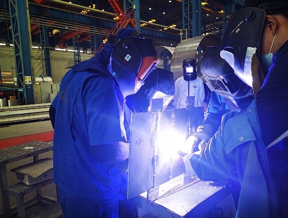 在林德公司实习的一周内,陈春总经理与公司多位资深技术人员分别对林德的前沿研发技术、集团总体概况、发展历程、业务范围以及空分设备制造、铝合金焊接原理、焊接缺陷类型、射线/超声/渗透检测原理与评价方法等进行了生动讲解和实操演示。同学深切感受到了林德工程责任、包容、共建的企业文化,学习了空分设备制造、铝合金焊接及无损检测等理论知识。整个实习过程将专业理论培训与车间实体演示穿插进行,在工人师傅的演示与指导下,同学们现场轮流体验了铝合金双人双面同步氩弧焊等焊接过程,参与焊接缺陷的超声DAC定量、射线底片评定、渗透检测等检测过程,同学们积极与工人师傅们展开交流,感叹“实习收获远超预期,林德应成为实习单位的标杆”。