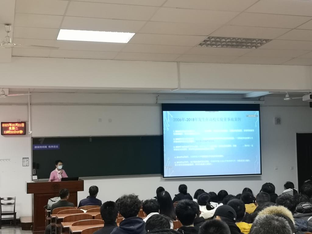 随后,侯晓多工程师讲解了实验室安全及注意事项。她用大量真实的实验室安全事故为切入点,强调安全需要是最基本的需求。要求同学们一定重视规范,培养安全意识和习惯。同时希望同学们在开展实验之前,了解实验环境、设备、危险源等,定期排查安全隐患并制定紧急预案,确保安全。