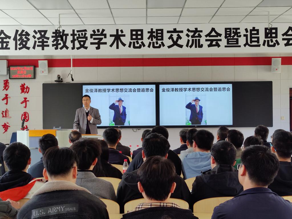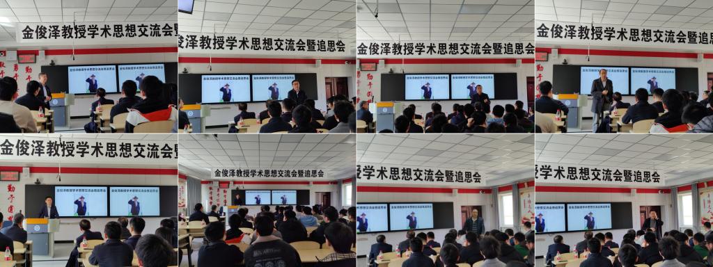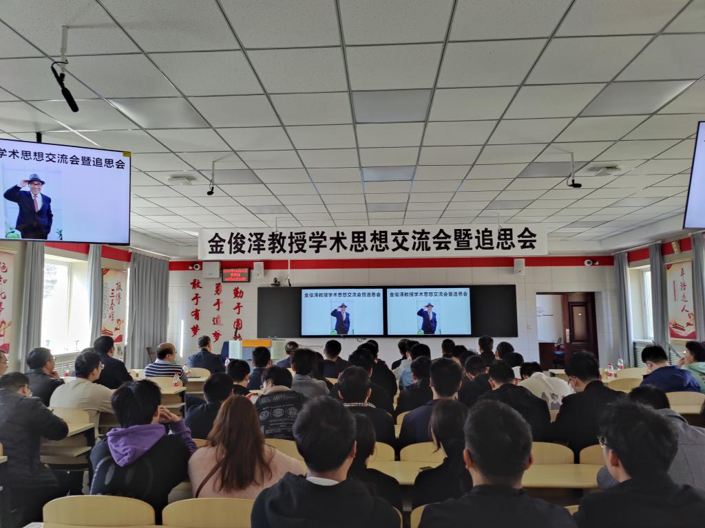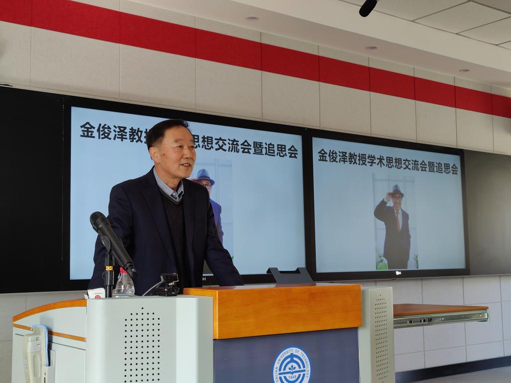 李廷举教授主持了讨论交流环节,多位老师纷纷发言,深情回忆了与金俊泽教授相处学习的情谊。李老师首先表示对金先生最深刻的印象是他终身学习的精神,讲述金先生年岁渐长后仍坚持自学有限元、CAD等知识,也希望大家能保持对知识的探索欲不断学习;姚山教授回忆员工时代组内艰苦奋斗却也温暖轻松的日子,表示将当下的点点滴滴做好一定会对未来有帮助;郝海教授勉励大家学好语言、学好专业、培养爱好,能坚持想法敢于发言;张维平教授回忆了金先生对自身和员工严格要求的治学态度;王同敏教授讲述了金先生严谨治学的工作风格;张兴国教授以缘分一词展开回忆了与金先生日常相处的趣事,风趣幽默的语言中表达了对金先生的怀念;曹志强教授讲述金先生对专业方向创新的看法,鼓励大家要敢于创新、善于创新;房灿峰教授以自身论文答辩经历展开,希望同学们严谨治学。