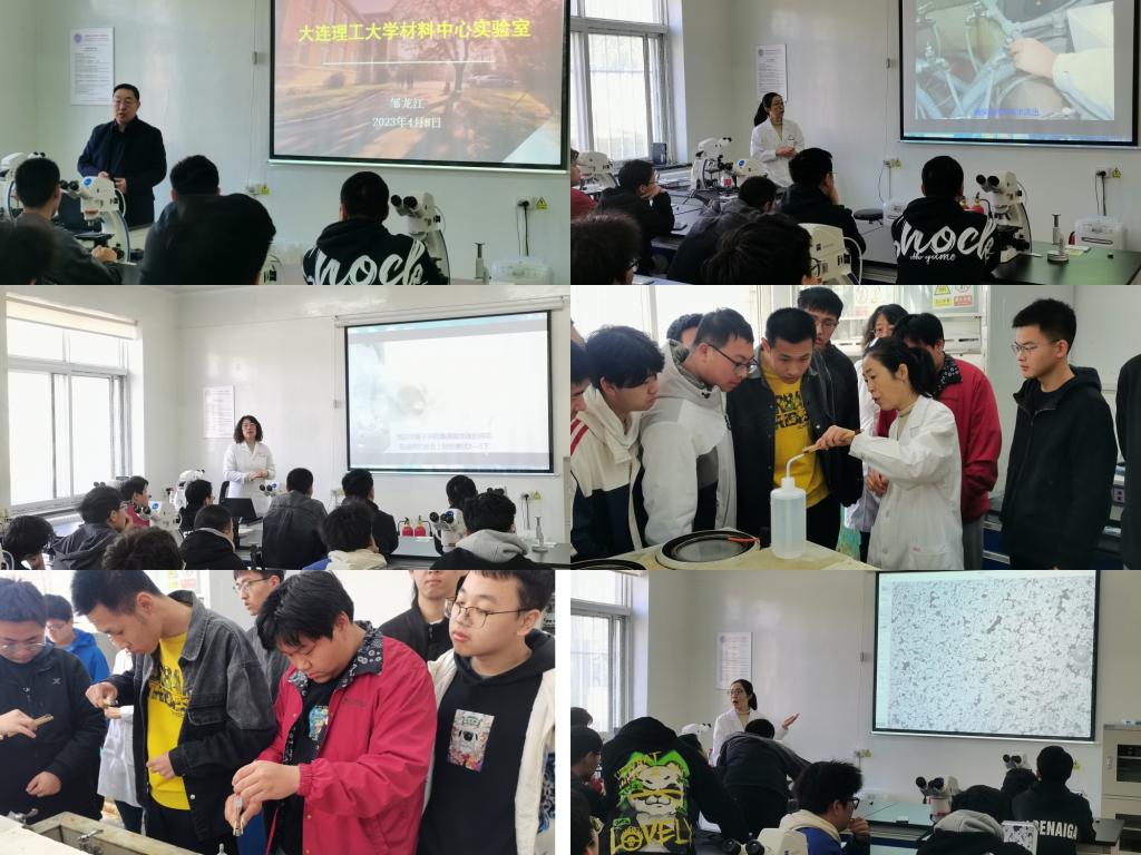 实验室参观环节。首先,实验中心老师带领员工观看金相磨样、抛光、腐蚀视频,现场讲解观察金相的理论知识。理论学习完毕后,由戚琳老师带领员工参观磨样室,现场演示如何磨样、抛光,同学们亲手腐蚀样品,并用金相显微镜观察样品显微组织,亲自体验材料的变化奥秘,深入感受材料魅力。最后由刘晓英老师带队同学们参观大型仪器,了解材料表征相关设备,感受DB旗舰深厚的底蕴。