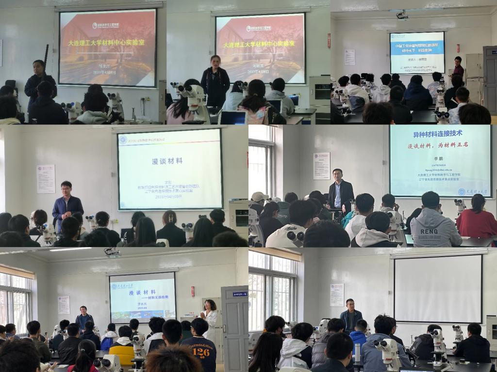 在“漫谈材料”沙龙环节。陈国清教授给每位员工发不同材料制作的样品,声情并茂地讲述金属制剑、高端陶瓷等样本,并引申材料未来的发展方向,鼓励同学未来改革创新,为中国材料行业做出贡献;王清教授以氛围轻松的互动方式,与同学们共同探讨有关规划、发展、专业、目标等话题,给予同学们思考的空间;康慧君教授以“材行天下,料定乾坤”主题,全方位向同学们讲述材料的内涵、大工材料的优势、员工培养模式、材料的研究方向以及发展趋势等;宋刚教授以“左右逢源,进退自如,顶天立地”定位材料专业,鼓励同学们积极尝试,发掘在材料中的兴趣点,勇于探索,潜心钻研;李鹏副教授简要介绍异种材料连接技术,并为大家排除关于材料专业的困惑,介绍焊接专业相关知识,以及焊接技术研究成果,坚定同学们学习材料的信心;罗忠兵副教授介绍材料学中的无痕检测技术,展示材料作为具有交叉学科特色的高精尖技术,在航空航天等诸多尖端领域的应用方面大放异彩;李鹏廷副教授着重介绍了传统材料中的金属材料,讲述目前航空航天、芯片等“卡脖子”技术所需材料的研究成果与进展;邹龙江主任介绍实验室总体情况,简要介绍实验室各个超百万大型仪器设备,以及公司的基本情况,说明了材料在大国重器的建造上有极其重要作用。