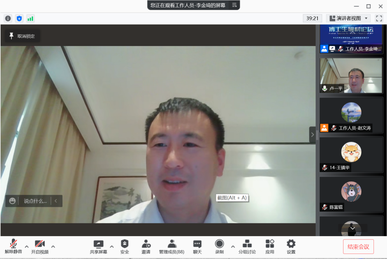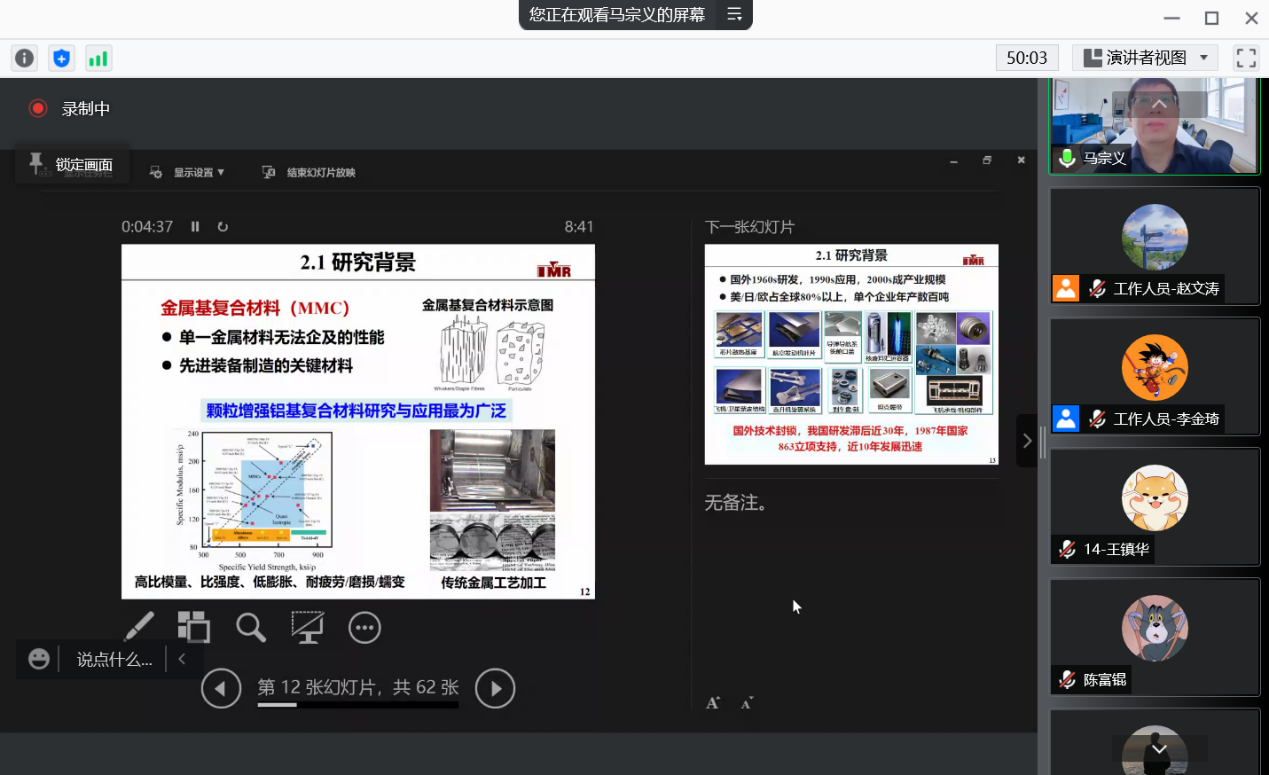 本次论坛中,马宗义与卢磊两位特邀嘉宾分别作专题报告。马宗义老师主要向我们讲述了轻质高强铝基复合材料的研发与应用。他所在的团队通过独特的创新思想以及科研手段解决了我国面临的瓶颈问题,并取得了重大突破,其成果广泛应用于“嫦娥、天问、天和、北斗”等重要领域。