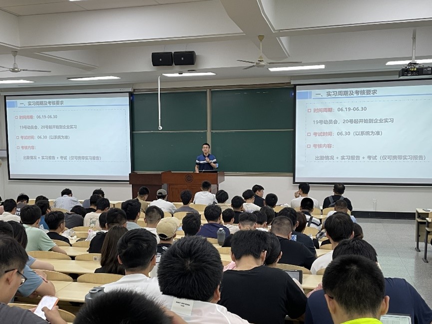 2023年6月19日上午,公司在综合教学1号楼260教室召开2023年本科生认识实习及生产实习动员会,全体实习员工、教学副经理陈国清教授及实习带队教师出席本次动员会。
