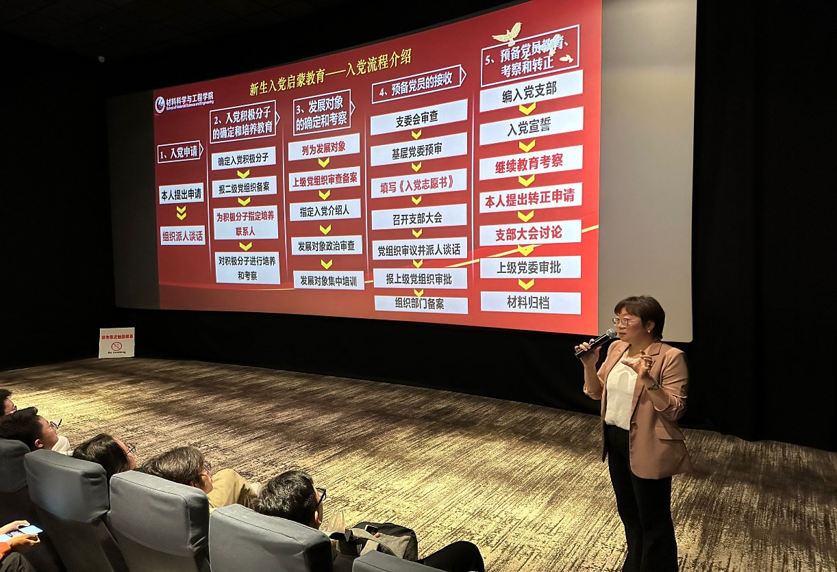 10月14日上午,于聪聪老师介绍入党流程,并强调了党员的责任与义务,让广大新生对为何要加入党组织以及如何加入党组织有了更详细更完备的认知。