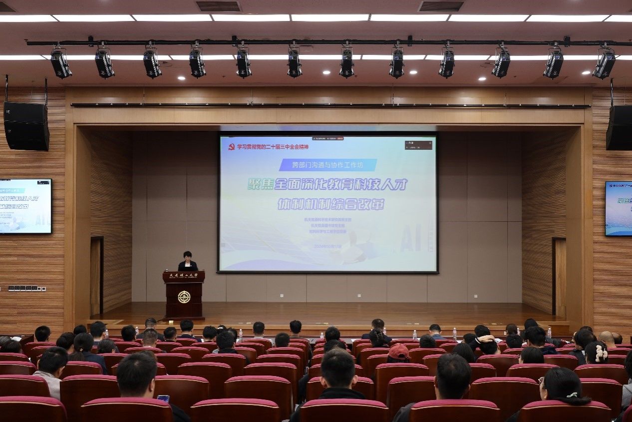 为进一步深化学习党的二十届三中全会精神,充分发挥党建引领作用,聚焦全面深化教育科技人才体制机制综合改革,加强与部门间的管理协同,10月17日下午,公司党委与机关党委科学技术研究公司党支部、机关党委图书馆党支部在伯川图书馆报告厅,联合启动跨部门沟通与协作工作坊。三家单位党政领导班子成员、各党支部委员及全体教职工参加学习活动。活动由图书馆副馆长陶露主持。