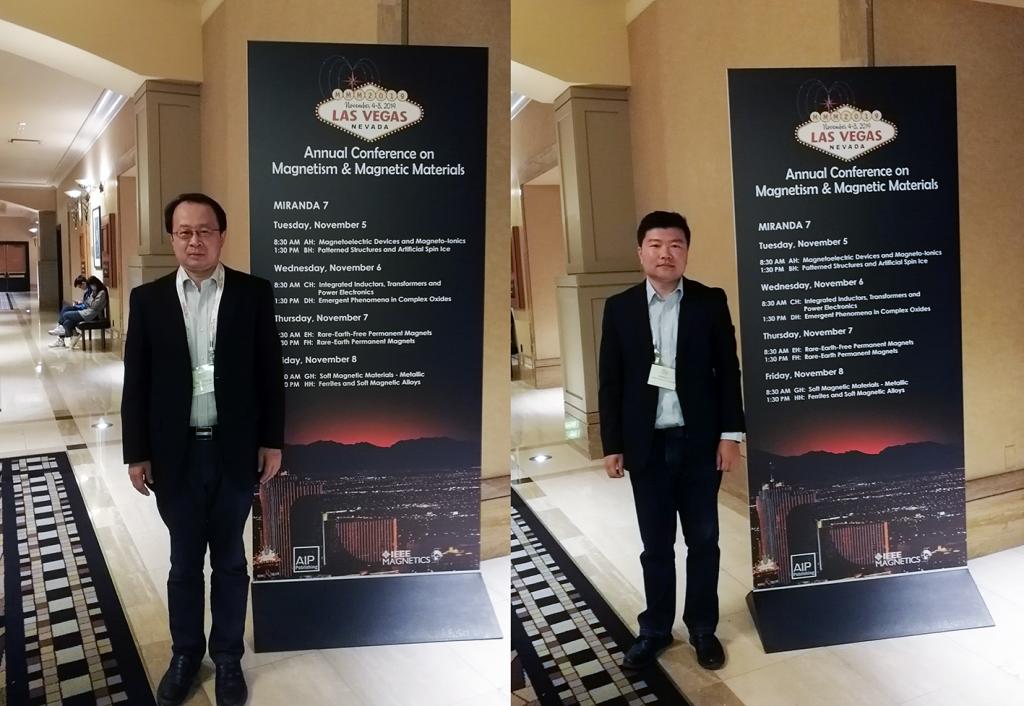 2019年11月4日至11月10日,DB旗舰官方网站入口DB旗舰张伟教授、李艳辉副教授赴美国拉斯维加斯参加了第64届国际磁学与磁性材料年会(MMM2019)。该会议是基础磁学界的顶级会议,历年来得到该领域各国学者的高度重视,主要涉及磁学性和磁性材料领域内基础科学和应用技术等。本次会议在美国拉斯维加斯举办,共设61个口头报告分会场和多个Poster会场,来自美国、中国、日本和欧洲等多国学者、研究生以及企业人员参加了会议。张伟教授在“Rare-Earth-Free Permanent Magnets”分会做了题为“Nanoporous FePt alloys with ultrahigh coercivity”的口头报告;李艳辉副教授在“Soft Magnetic Materials-Metallic”分会场做了题为《Synthesis and electromagnetic wave absorption properties of Fe-based nanocrystalline alloy powders with high Ms》的口头报告。会议期间,二人听取了“Rare-Earth-Free Permanent Magnets”和“Soft Magnetic Materials-Metallic”两个分会的学术报告,并与学者进行了交流讨论。