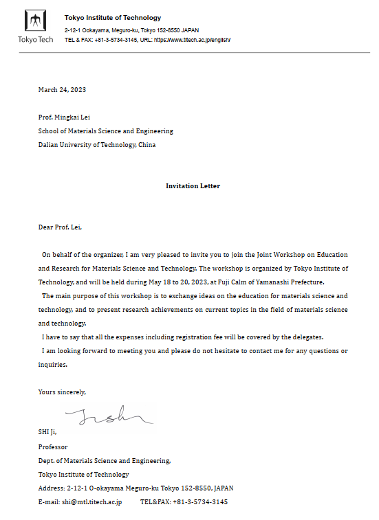 应东京工业大学邀请,我单位董红刚教授、董伟副教授、雷明凯教授、教务处刘勃助里研究员拟赴日本进行学术交流访问。现将该团组出访情况公示如下: