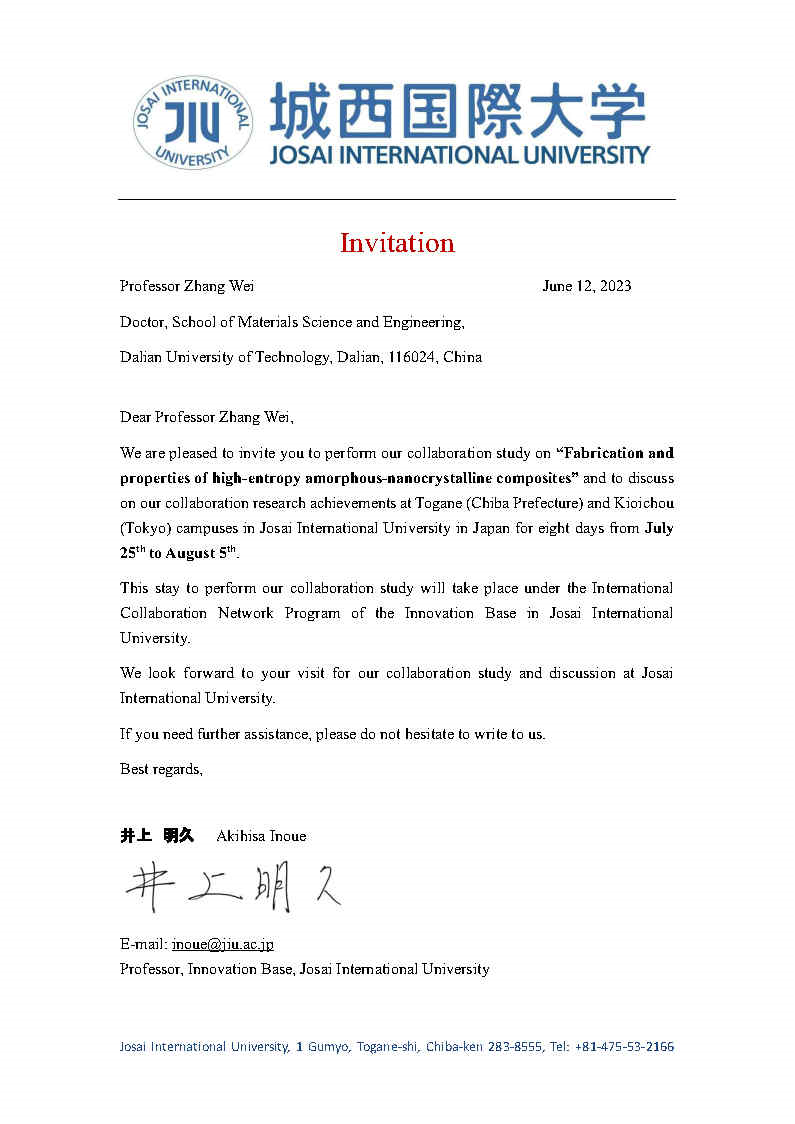 日本城西国际大学国际绿色材料研究所和井上教授、孔凡利副教授讨论;制定今后共同研究计划;回国准备 |