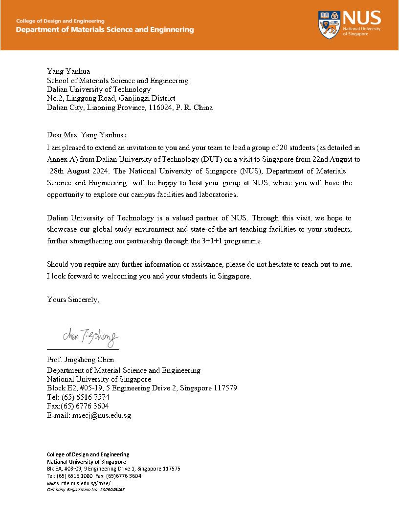 应NATIONAL UNIVERSITY OF TECHNOLOGY邀请,我单位杨艳华等拟赴新