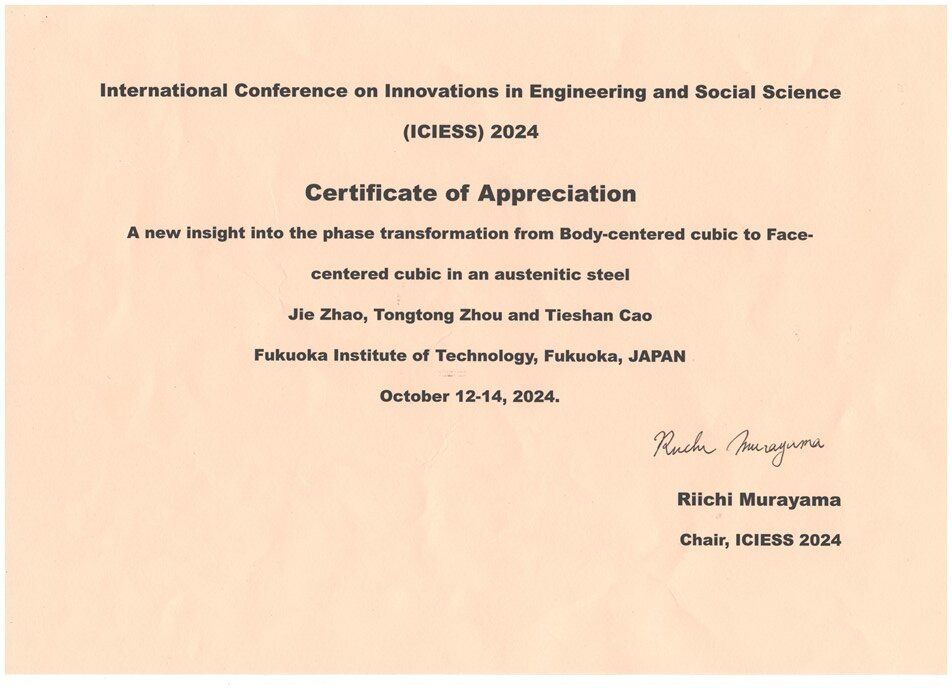 2024年10月12日至10月15日,DB旗舰赵杰教授受邀赴日本福冈参加了International Conference on Innovations in Engineering and Social Science (ICIESS2024)会议。