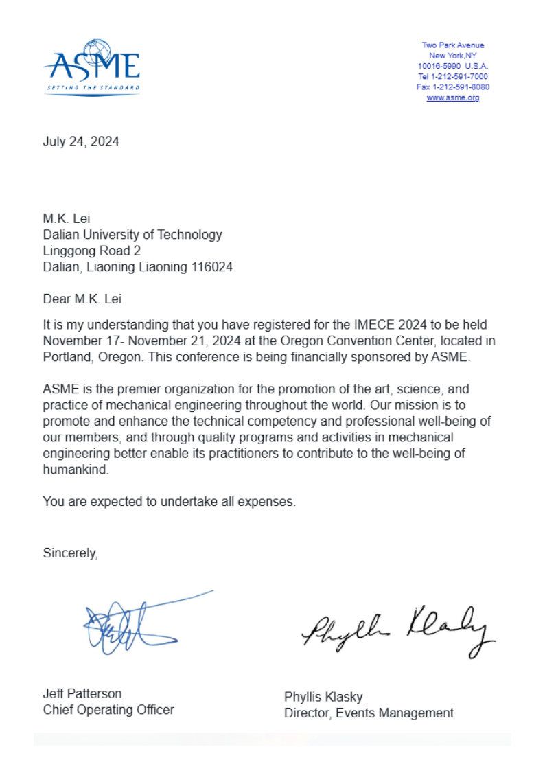 应IMECE2024 会务组邀请,我单位雷明凯拟赴美国进行学术交流。现将 |
