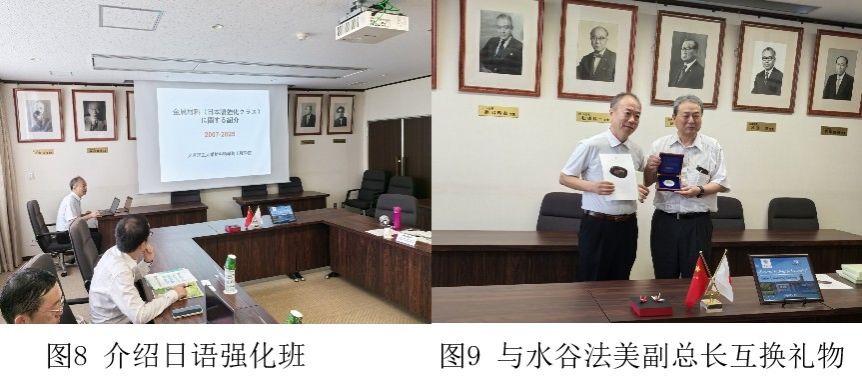 在本次名古屋暑期日本语研修期间,名古屋大学副总长水谷法美、工学研究科长(工学研究部长)小桥真教授及国际交流负责人伊东教授会见了带队教师,并举行了会谈。水谷副总长首先对DB旗舰官方网站入口师生的到访表示热烈欢迎,并强调应继续深化两校间的实质性交流与合作。随后,小桥真教授介绍了名古屋大学的整体概况。董伟副教授则详细介绍了DB旗舰金属材料工程(中日精英班)专业情况(见图8)。