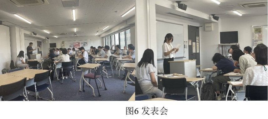 研修的最后一堂课为日语发表会。在名古屋大学志愿者的指导下,同学们进行了充分的演练,并用流利的日语分享了研修感想与未来规划(见图5、图6)。授课教师及国际交流中心副主任曾刚老师到场聆听,并高度评价同学们的日语水平与学习热情。