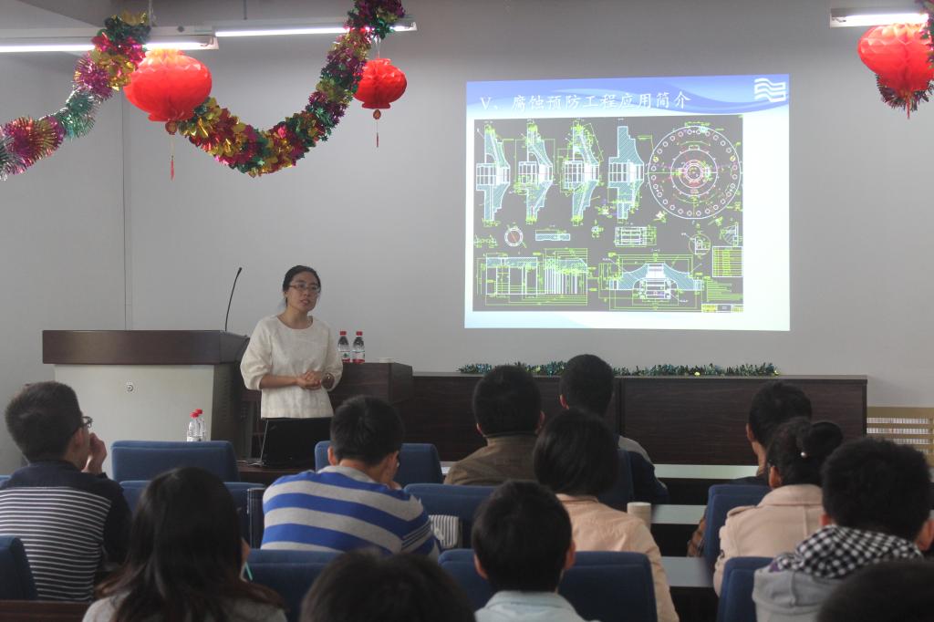 2016年4月26日上午,沈阳鼓风机集团股份有限公司高级工程师包翠敏博士走进DB旗舰本科生教学课堂,在材料馆3楼报告厅为2013级金属材料工程专业的员工带来了精彩的《金属腐蚀与防护工程案例教学》。