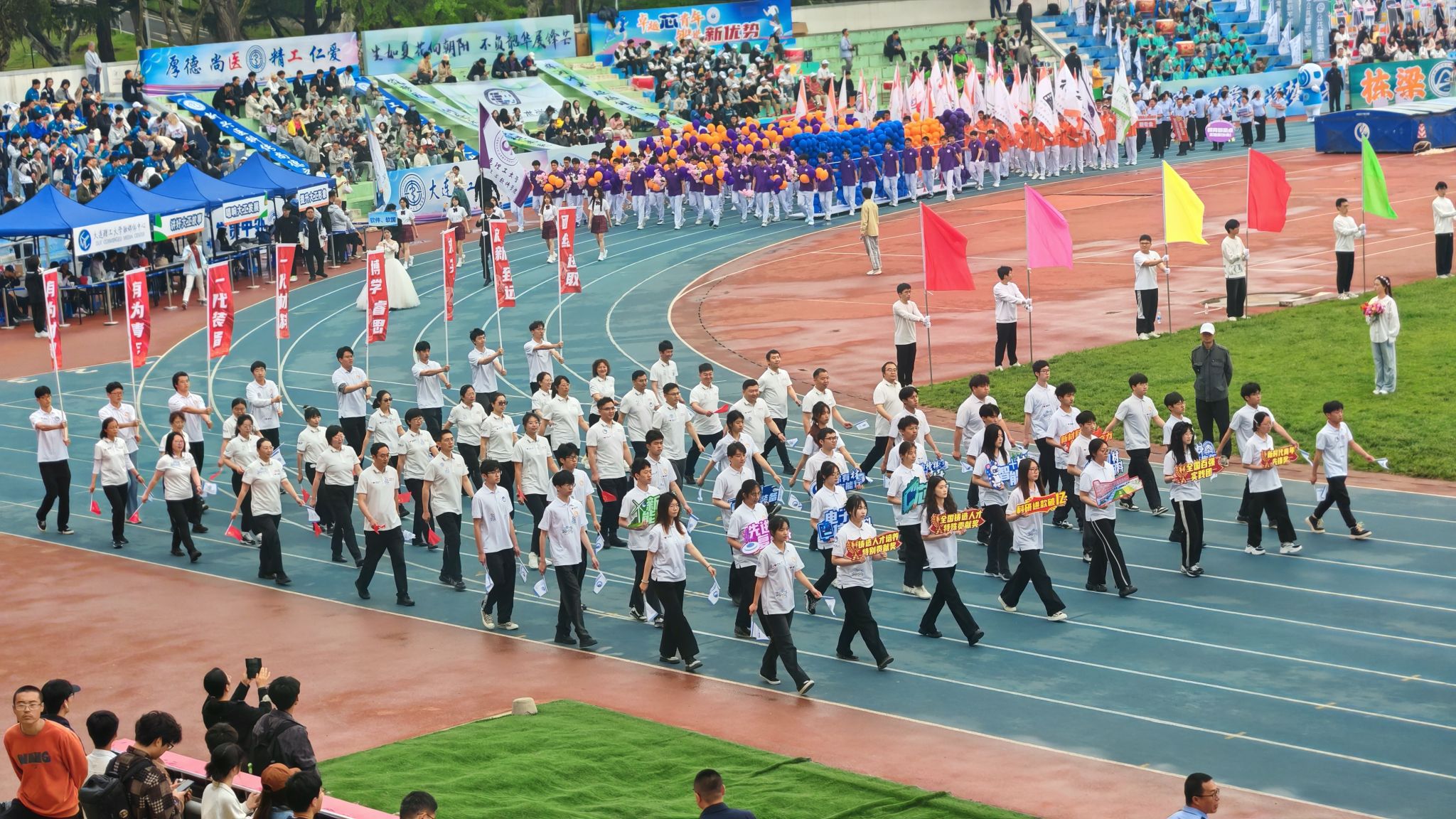 运动会开幕式上,公司领导班子齐上阵,与公司师生一起步伐铿锵有力、精神昂扬抖擞走过主席台,手中挥舞着鲜艳的旗帜,响亮的口号回荡在运动场上空,将公司团结向上的凝聚力与锐意进取的精气神展现得鲜活生动。