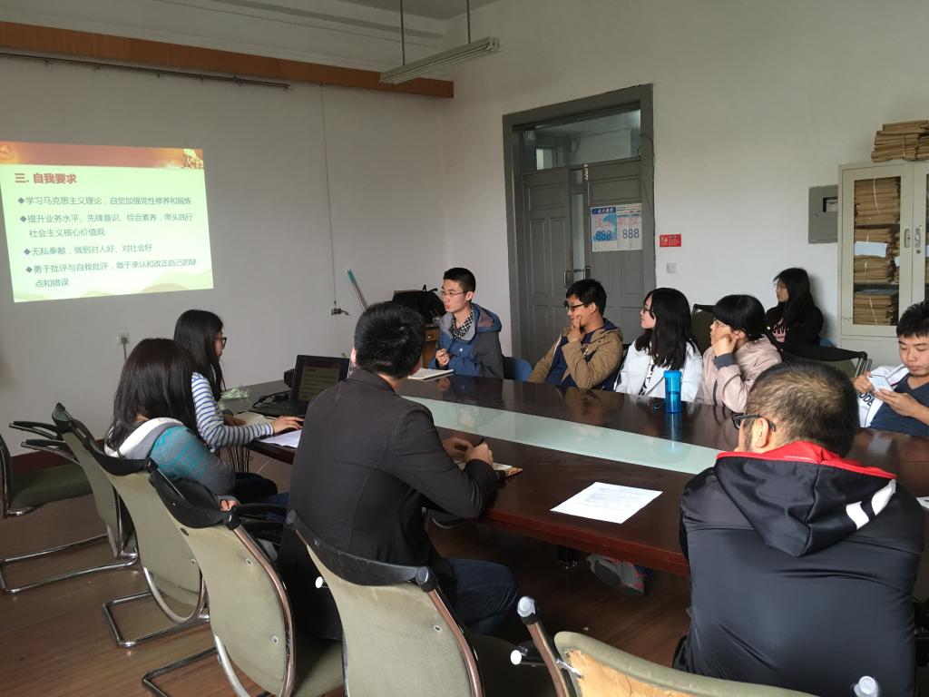 会议开始,由支部书记郝建洁介绍了“两学一做”的活动背景以及活动的安排,并强调了此次活动的重要性以及对每个党员的意义,要求每位党员认真对待,积极学习党章党规。尊崇党章,遵守党规,明底线,知敬畏,深学细照笃行,不断自我净化、自我完善、自我提高。接下来,支部成员一起学习了讲解党章的视频。在观看完学习视频之后,支部书记要求大家在平时的学习生活中也要谨记自己一名党员的身份,认真学习,做一名新时期真正的合格党员。