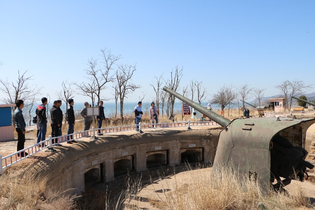 支部同志们首先参观了号称“百发不中”的电岩炮台及炮台坑道。100多年前,俄日两个帝国主义强盗为了瓜分中国,竟在这里旁若无人进行了一场疯狂的厮杀,而满清政府竟然袖手旁观、置身事外,祖国山河破碎,人民备受奴役。故地重游,了解到这段历史,当时的悲惨场景历历在目,在场的党员同志们心中不由得生出了些许的沉重与忧思。
