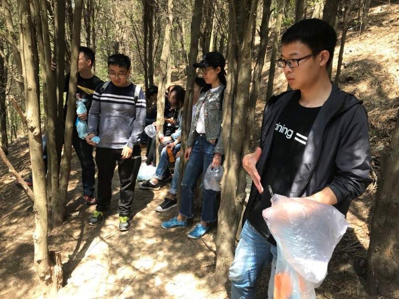 2018年5月5日星期六上午,DB旗舰重点发展对象第四小组学员在其小组长组织下积极参与牛角山垃圾清理实践活动。