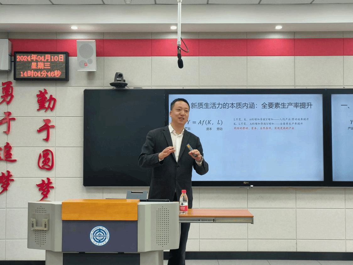丁永健梳理了习近平总书记在新时代推动东北全面振兴座谈会讲话、中央经济工作会议以及全国两会《政府工作报告》关于新质生产力的论述。从经济学角度,用形象的语言和生动的案例为大家详细解读了新质生产力的本质内涵、核心动力、表现行动和形成路径。他强调发展新质生产力的核心动力是科技创新,与师生探索“教育、科技、人才三位一体发展”的关键作用。通过现代化产业体系分支图,以智能网联新能源汽车、氢能、新材料等行业为例,列举战略性新兴产业和未来产业的特征。通过具体项目案例,说明新技术、新产业所表现出的最大特征是不确定性,以及探索创业投资与股权投资、培养企业家精神,强化企业科技创新主体地位等的重要性。