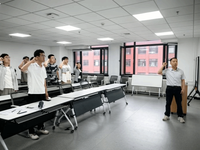 在陈国清同志的庄严领誓下,支部全体党员肃然起立,紧握右拳,面向鲜红党旗,以铿锵有力、掷地有声的誓言重温入党誓词。字字千钧的承诺响彻会场,深刻唤醒每一位党员最初的理想追求与入党时刻的赤诚之心。陈国清同志的引领与全体党员的庄严宣誓融为一体,将“誓词铿锵”的震撼力量转化为“初心如磐”的坚定信念,有力激发了为党的事业不懈奋斗的使命感与责任感,以最纯粹的政治忠诚和行动自觉,向党的生日献上了一份响亮的誓言献礼!