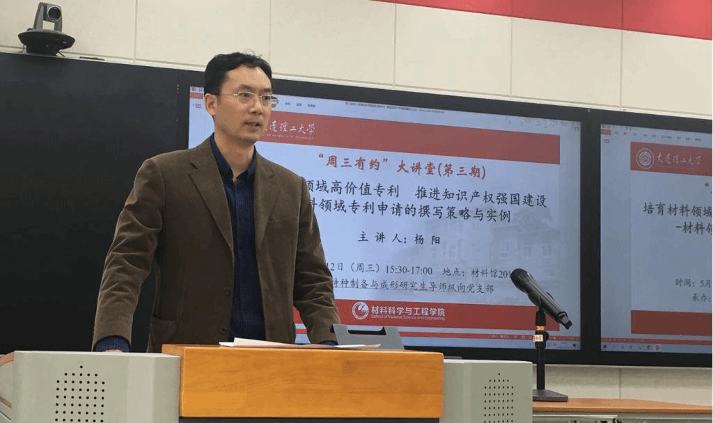 讲座过程中,受邀人杨阳老师为大家解读了国家、高校以及大工近些年来知识产权的相关政策,阐述了高价值专利的概念与内涵,以及高价值专利培育布局的理念、步骤和方法,最后特别针对材料领域,结合相关案例分析专利申请失败的原因及改进措施,梳理总结了专利申请的撰写策略和注意事项,并对在场师生提出的问题做了详尽解答。